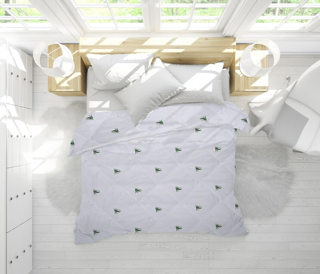 Pilota Eucalyptus este realizată din microfibră 100% și umplută cu fibră siliconică, oferind o combinație perfectă între confort și durabilitate. Densitatea de 250 gr/m² asigură o distribuție uniformă a căldurii.
