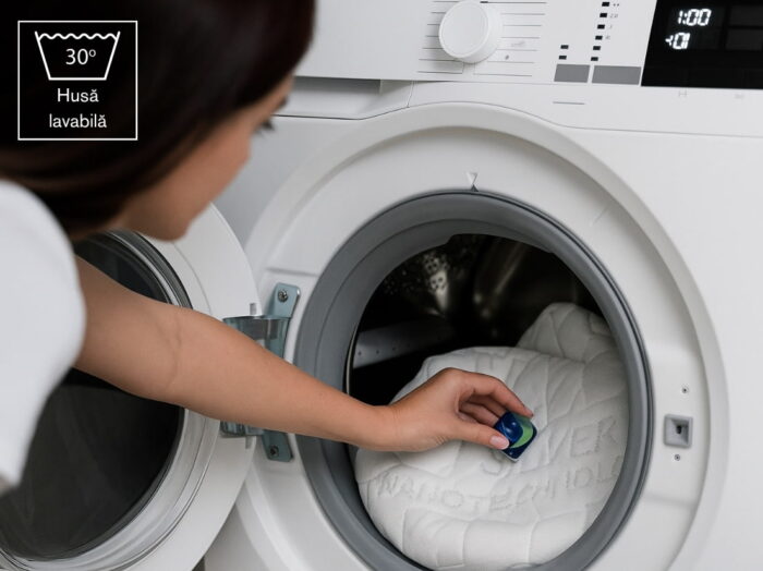 Husa este detașabilă și poate fi spălată la o temperatură de până la 30 de grade Celsius.