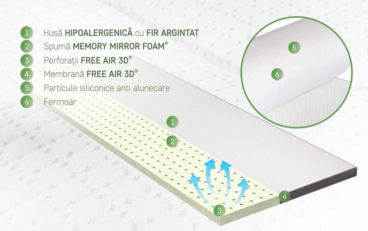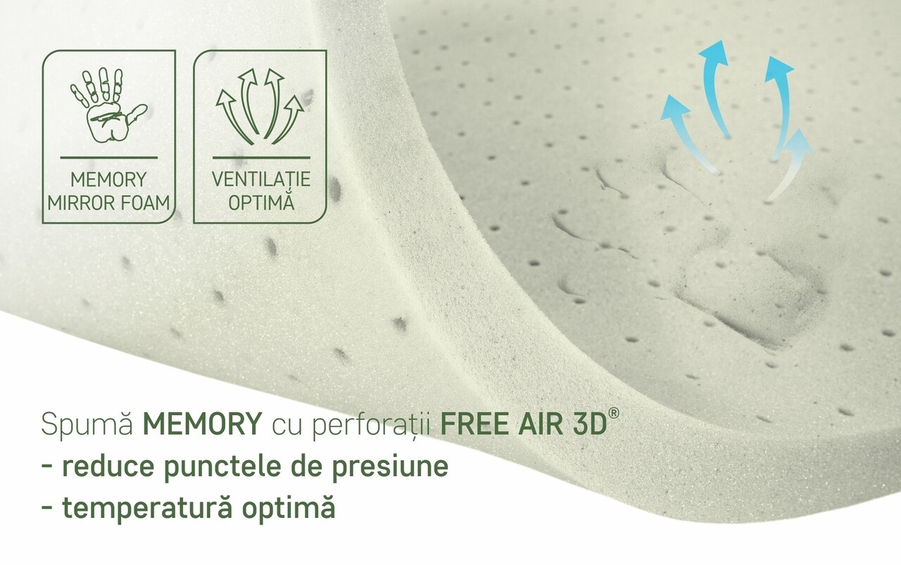 • Spumă Memory Mirror foam: 8 cm